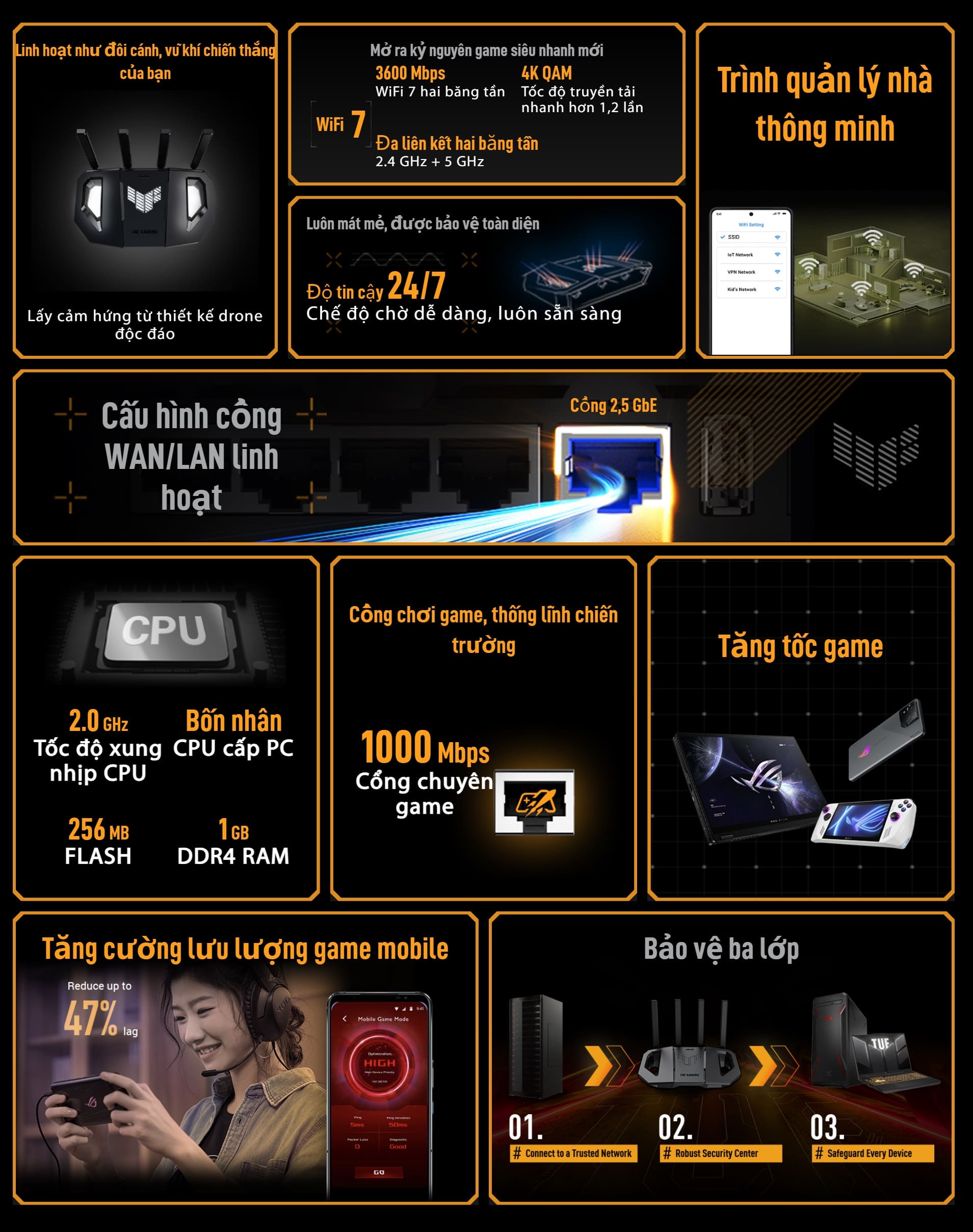 Đánh giá & Nhận xét về Router WiFi 7 ASUS TUF Gaming BE3600 V2 (BE3600Mbps, WAN, LAN 2.5G, AiProtection, AiMesh)