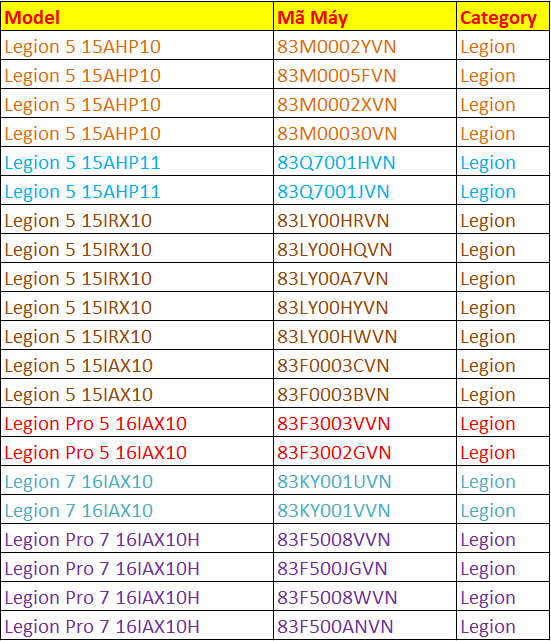 Đối tượng áp dụng: Khách hàng đầu cuối mua các sản phẩm LAPTOP LENOVO LEGION mới có trong danh mục áp dụng dưới đây tại Phi Long Technology