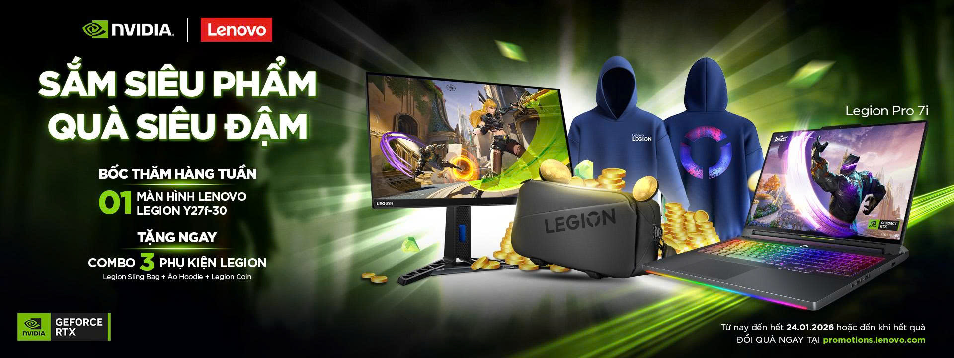 Quà tặng bốc thăm may mắn hàng tuần (công bố trên fanpage Lenovo Việt Nam): 01 màn hình Lenovo Legion Y27 trị giá 4.290.000Đ