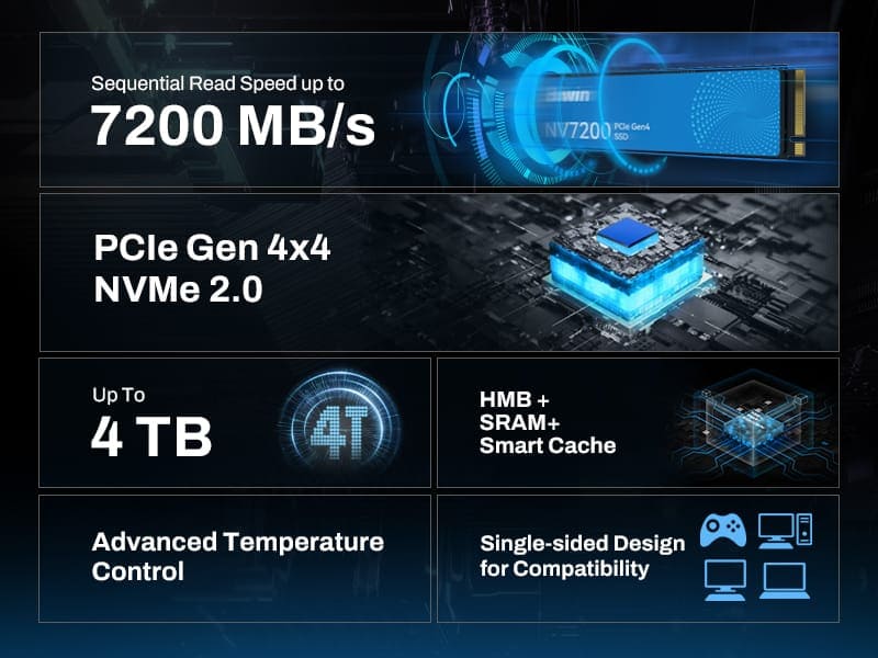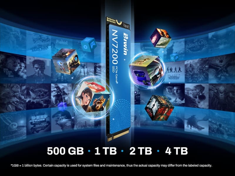 Với dung lượng lên đến 4TB, ổ cứng SSD Biwin NV7200 cung cấp không gian lưu trữ rộng rãi. Lý tưởng để lưu trữ trò chơi, tệp và video, đảm bảo đủ dung lượng để quản lý tất cả nội dung kỹ thuật số của bạn mà không lo hết dung lượng.