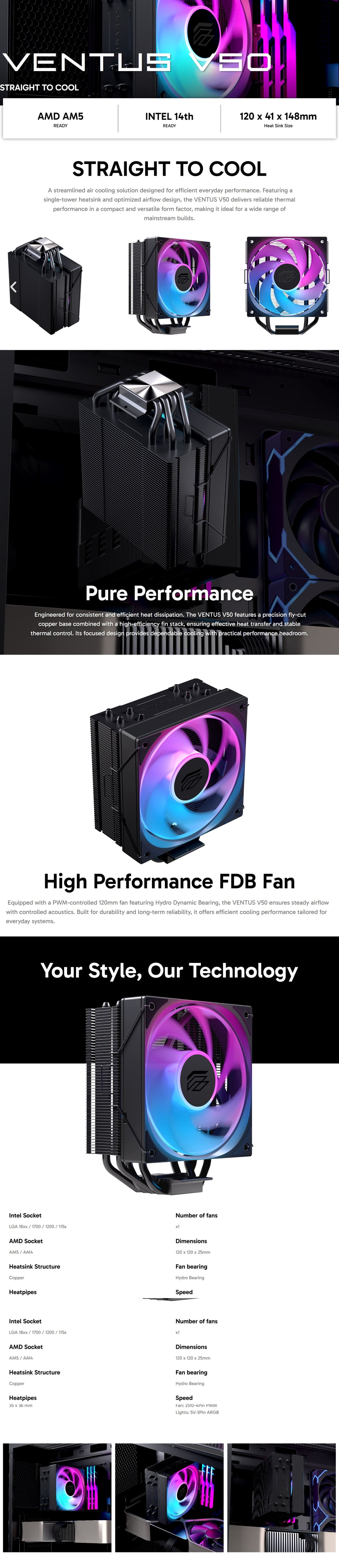 Hỏi đáp về Tản Nhiệt Khí CPU Einarex Ventus V50 ARGB (LGA1851/1700/1200/115x, AM5/AM4, 4 ống đồng, Cao 148mm)