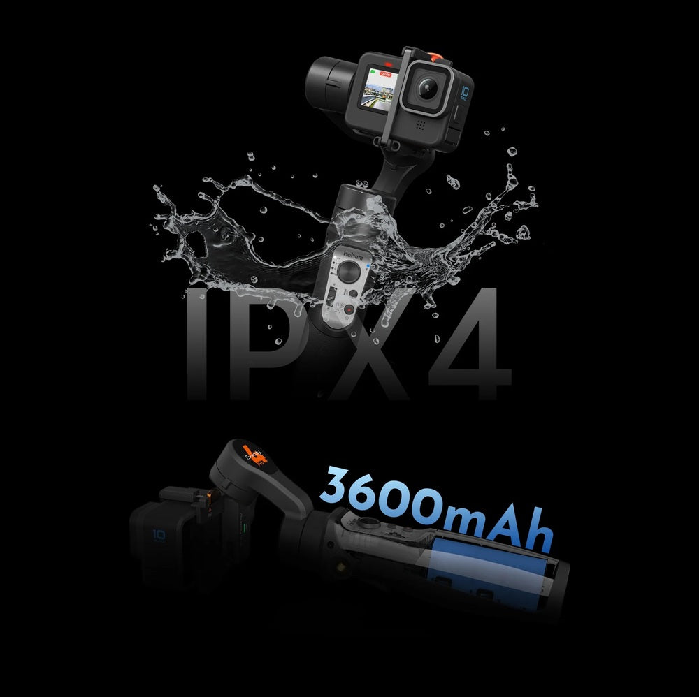 Gimbal iSteady Pro 4 chống nước theo tiêu chuẩn IPX4, giúp bạn có thể quay ngoài trời mà không sợ nước bắn hoặc mưa phùn.