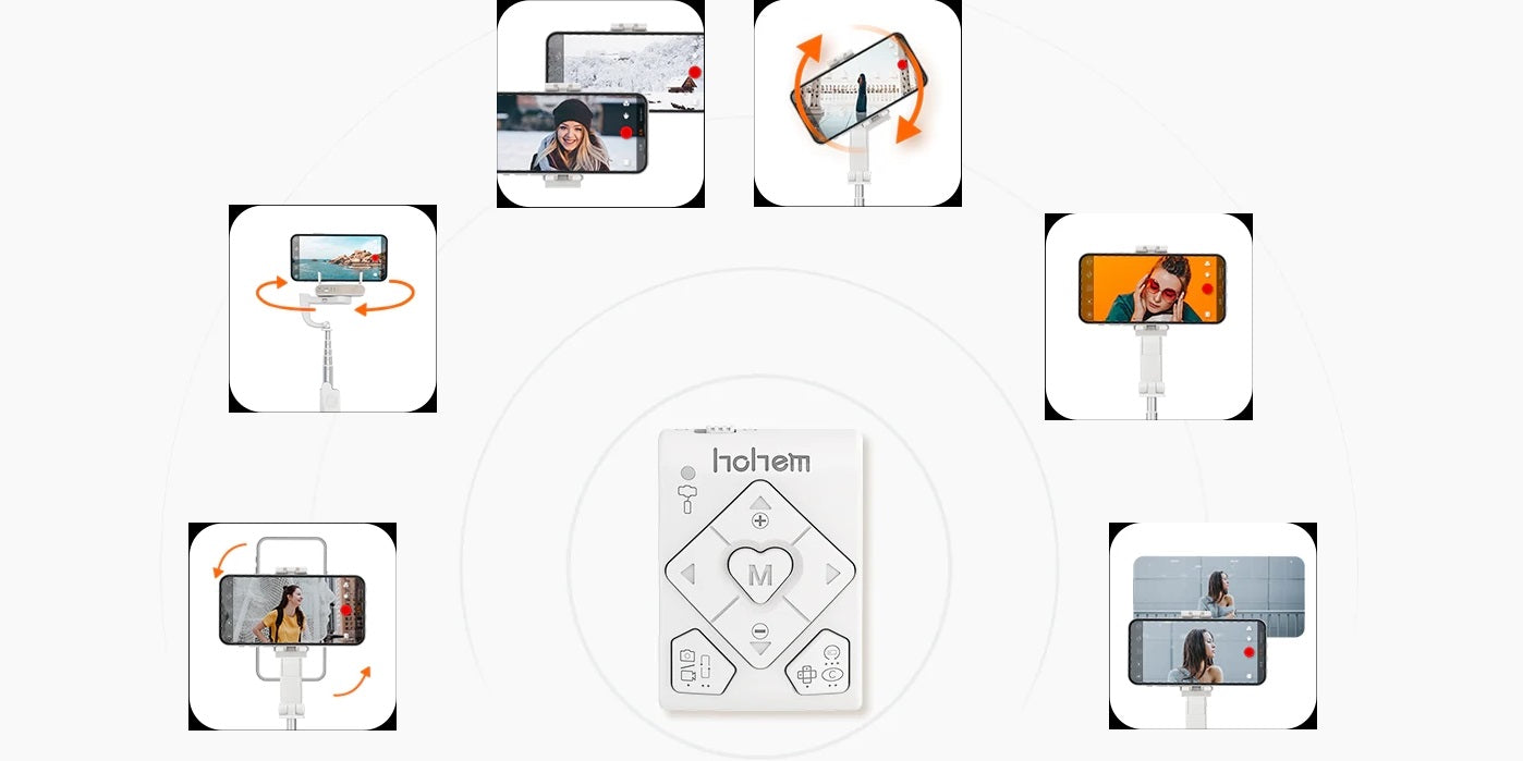 Gimbal Hohem iSteady Q có khả năng tự xoay điện thoại 360° theo chiều ngang. Gậy có thể theo dõi khuôn mặt, theo chuyển động của bạn và trở thành trợ thủ chụp ảnh tuyệt hảo.