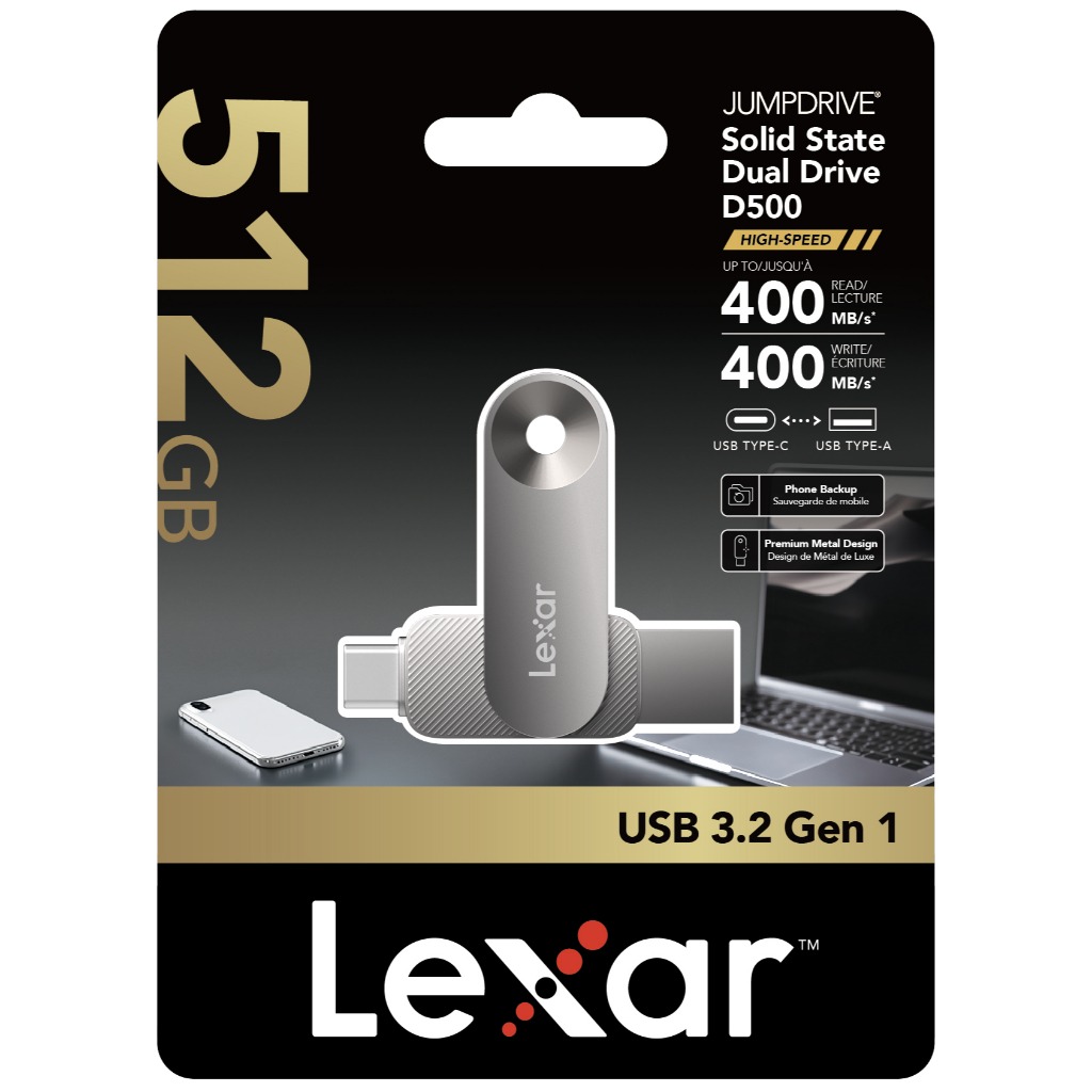 USB 512GB Lexar JumpDrive Dual Drive D500 USB3.2 Gen 1 Type-C + Type-A 400MB/s (LJDD500512G-BNQNG)