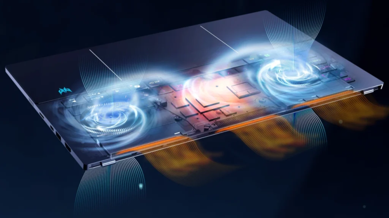 Bên cạnh đó, thiết kế Vortex Flow đặc trưng của Acer Predator sử dụng hệ thống quạt cùng các lớp foam cách nhiệt được bố trí thông minh để tối ưu luồng gió bên trong máy. Cách sắp xếp này giúp tăng cường hiệu quả tản nhiệt và bảo đảm độ ổn định của thiết bị ngay cả khi hoạt động liên tục trong thời gian dài.