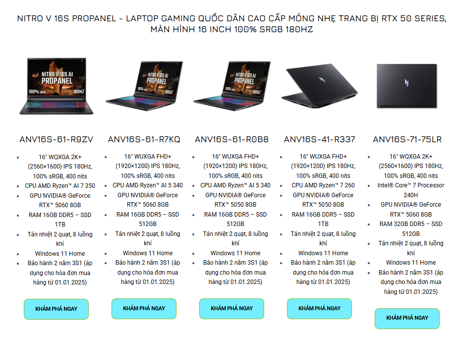QUÀ TẶNG ƯU ĐÃI NITRO V 16S AI PROPANEL 2025