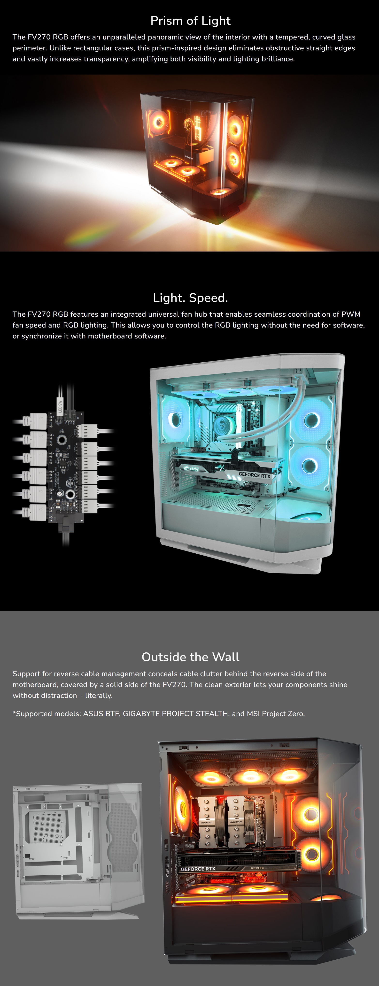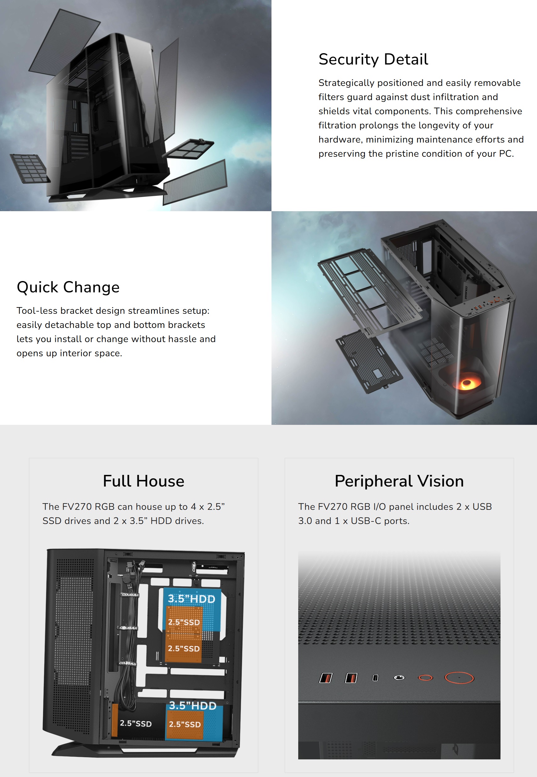 Vỏ case Cougar FV270 RGB Black (Mid Tower, E-ATX, Kính Cong, Sẵn 4 Fan ARGB, Max 9 fan, Rad 360, USB-C)