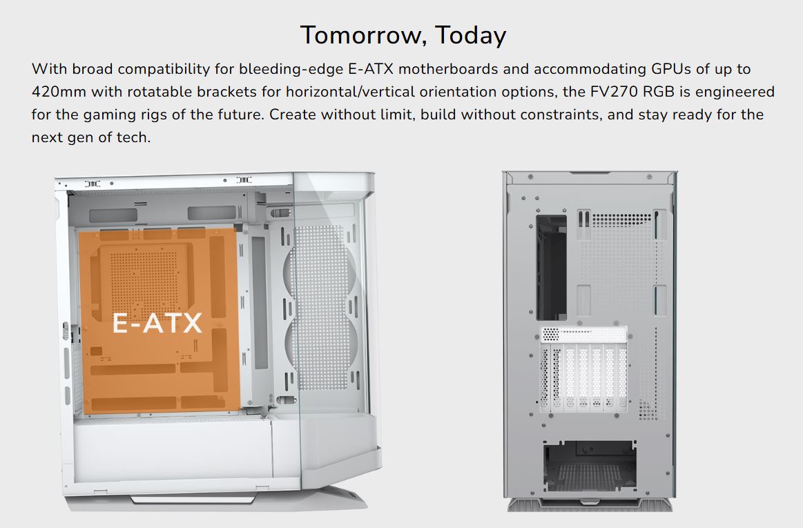 Hỏi đáp về Vỏ case Cougar FV270 RGB Black (Mid Tower, E-ATX, Kính Cong, Sẵn 4 Fan ARGB, Max 9 fan, Rad 360, USB-C)