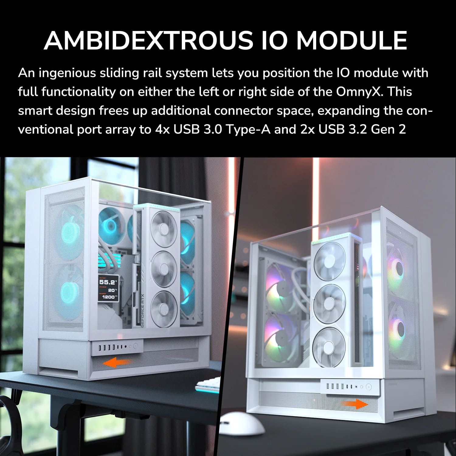 Vỏ case Cougar Omnyx Black (ATX, Sẵn 4 fan 160mm ARGB, Max 7 fan, Rad 360, USB-C)