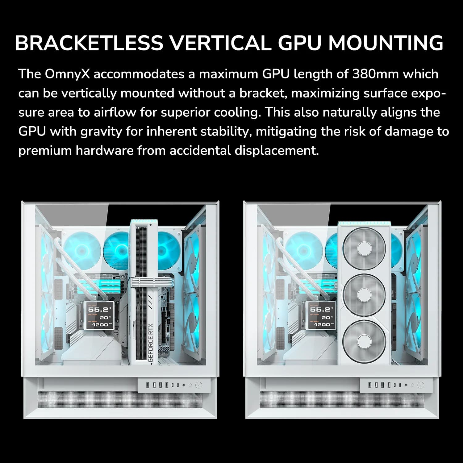 Hỏi đáp về Vỏ case Cougar Omnyx Black (ATX, Sẵn 4 fan 160mm ARGB, Max 7 fan, Rad 360, USB-C)