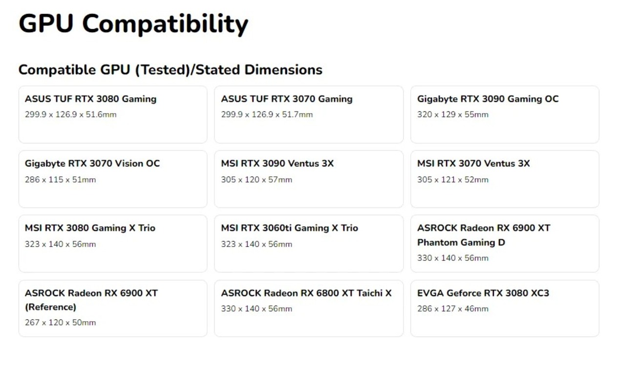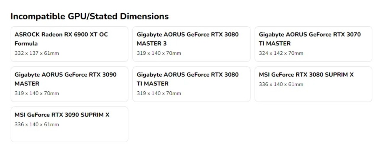 Hầu hết card với kích thước lên đến 335 x 140 x 58mm |
