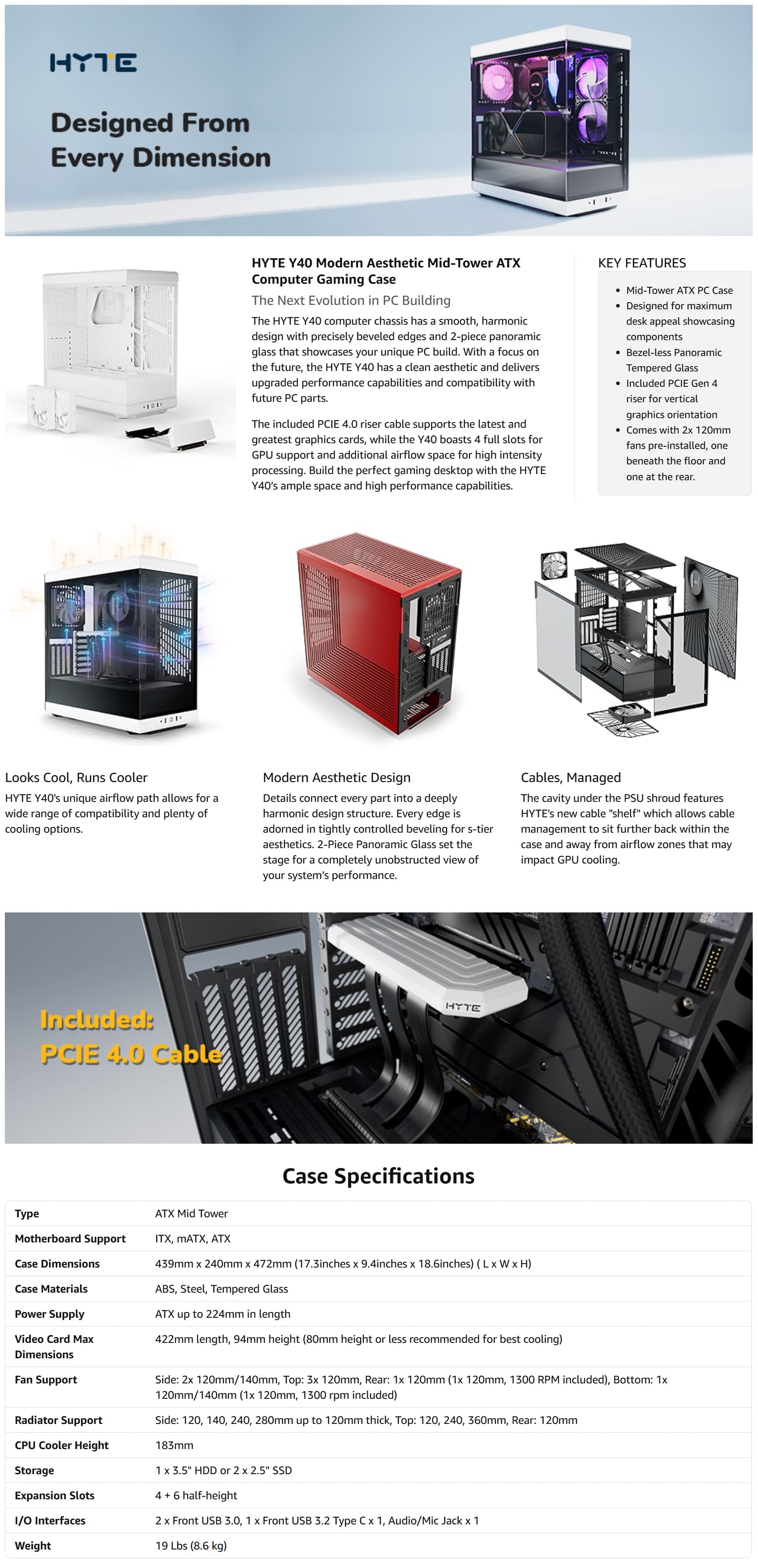 Hỏi đáp về Vỏ Case Hyte Y40 White/White (ATX, Sẵn 2 Fan 120mm, Rad 360, Kèm Riser PCIe 4.0) (CS-HYTE-Y40-WW)