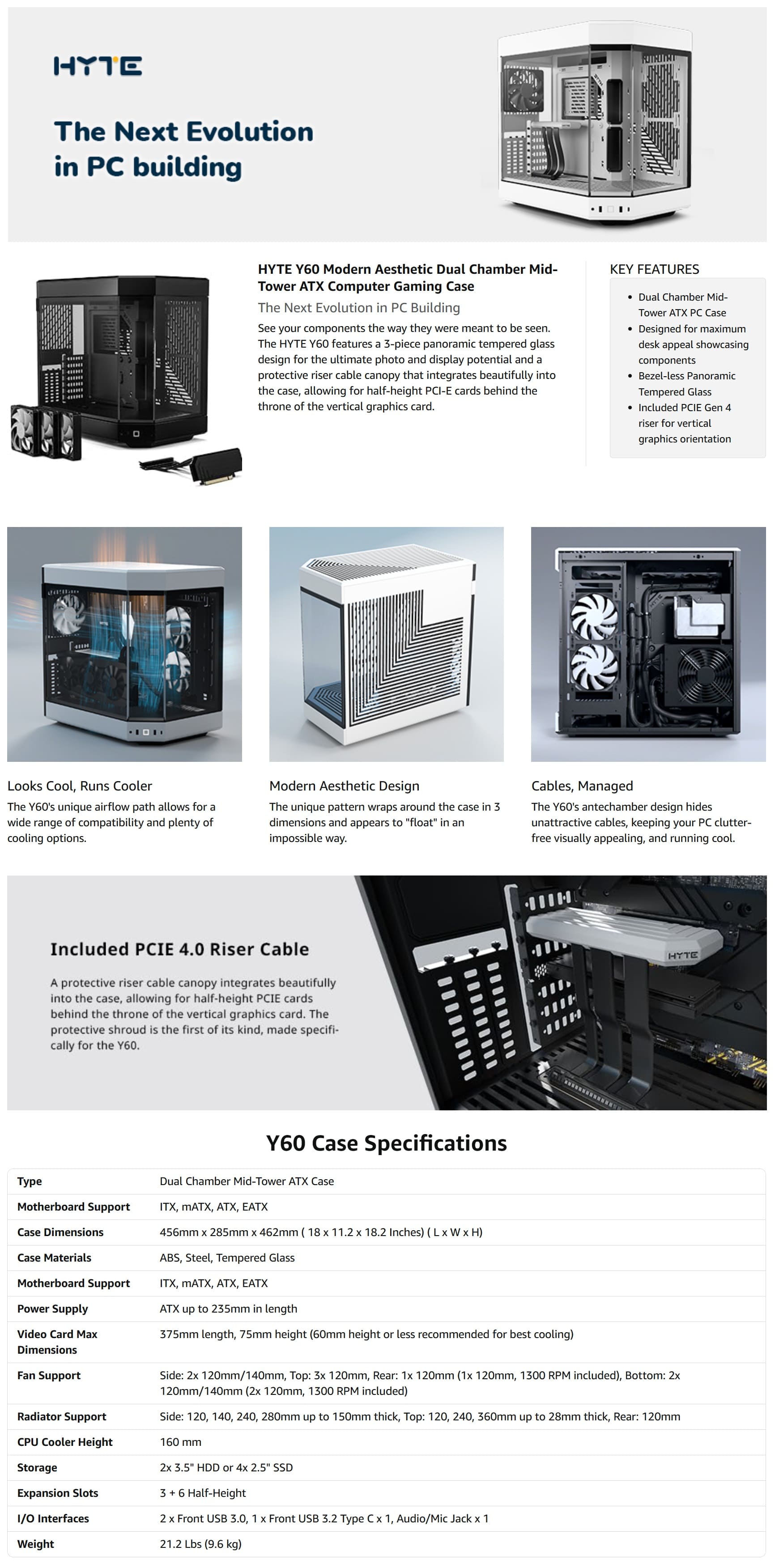 Hỏi đáp về Vỏ Case Hyte Y60 Black/White (E-ATX, Sẵn 3 Fan 120mm, Rad 360, Kèm Cáp Riser PCIe 4.0) (CS-HYTE-Y60-BW)