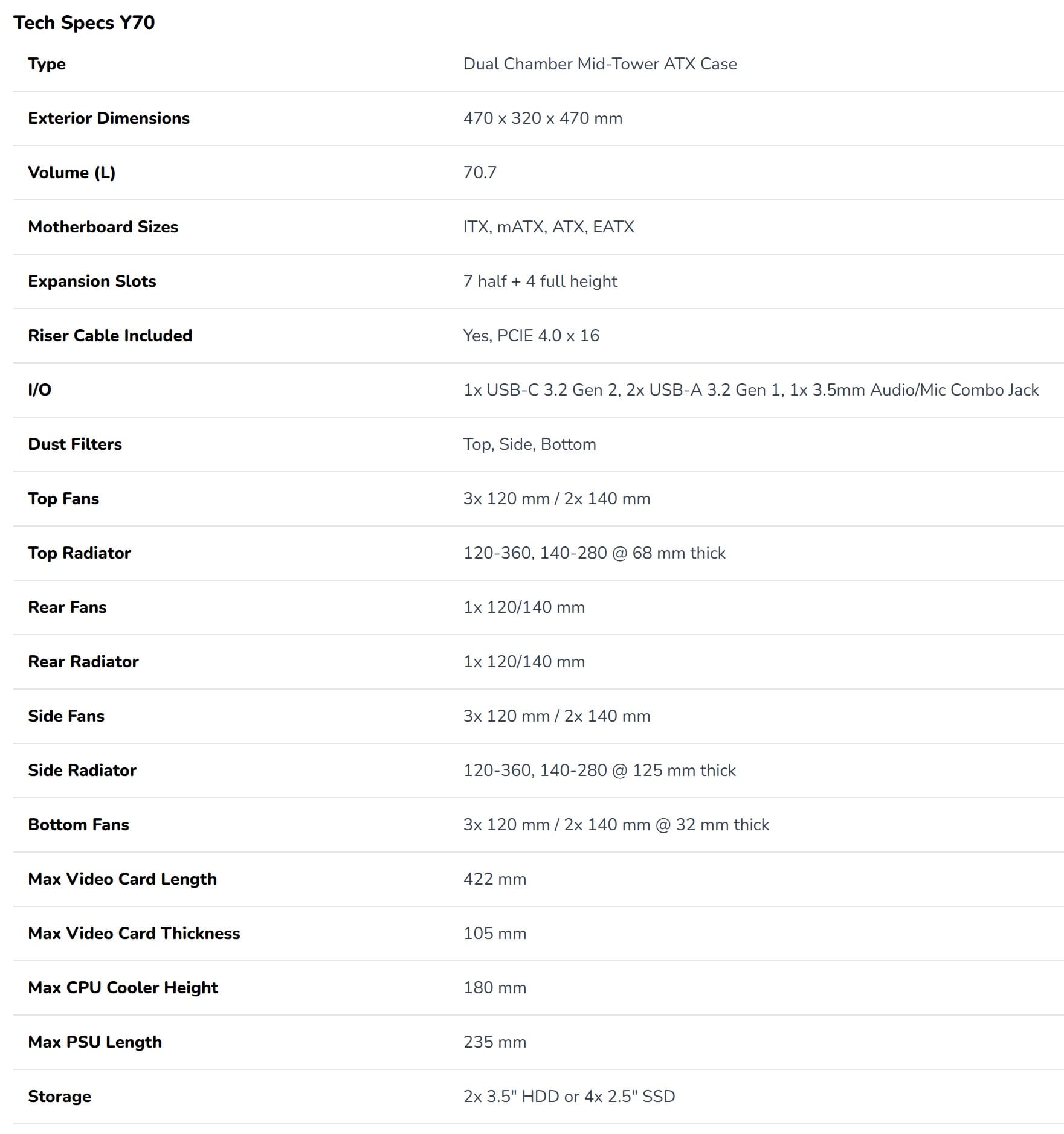 Pitch Black: CS-HYTE-Y70TTI-BB Panda: CS-HYTE-Y70TTI-WB Black Cherry: CS-HYTE-Y70TTI-RB Snow White: CS-HYTE-Y70TTI-WW |