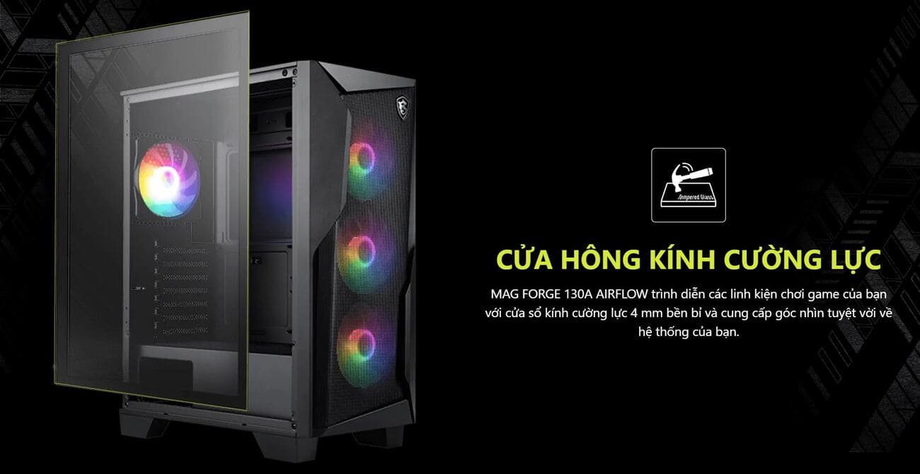 Đánh giá & Nhận xét về Vỏ Case MSI MAG FORGE 130A AIRFLOW (ATX, Sẵn 4 fan RGB, Max 8 fan, Rad 240)