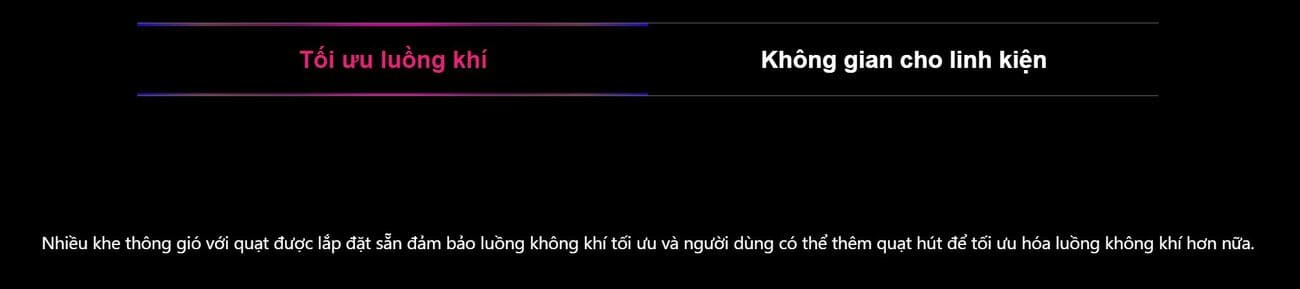 Hỗ trợ quạt tản nhiệt: Trên: 2x 120/140mm, Sau: 1x120 mm, Mặt hông: 2x 120mm, Đáy: 2x 120 mm