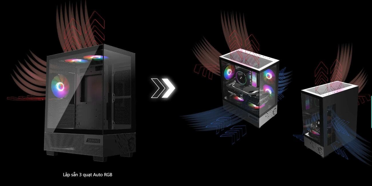 Sẵn 3 fan 120mm Auto RGB (2 phía trên + 1 phía sau)