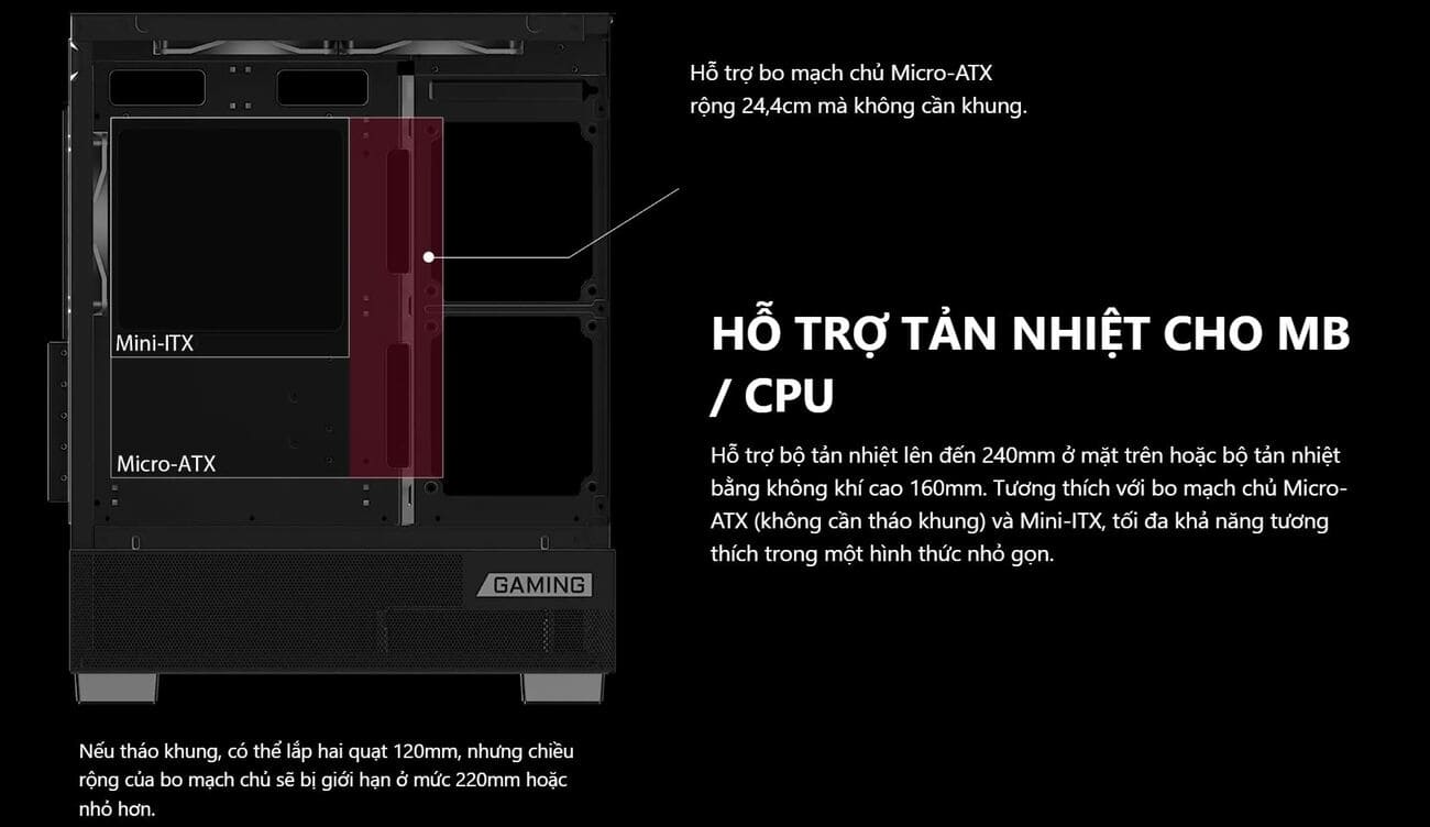 Hỗ trợ mainboard: Micro-ATX, Mini-ITX
