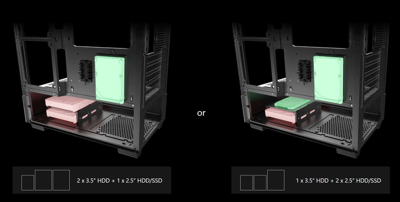 Khe ổ cứng: 1 x 2.5" + 2 x 3.5" hoặc 2 x 2.5" + 1 x 3.5"