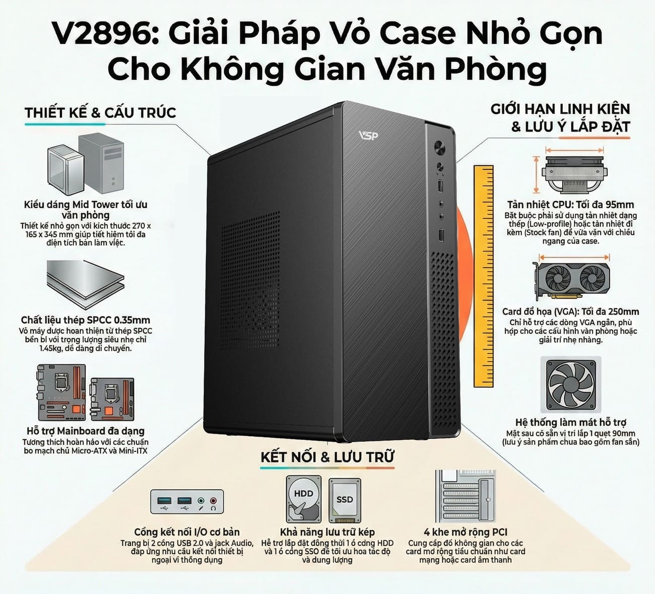 Hỏi đáp về Vỏ Case Văn Phòng VSP V2896 Black (m-ATX)
